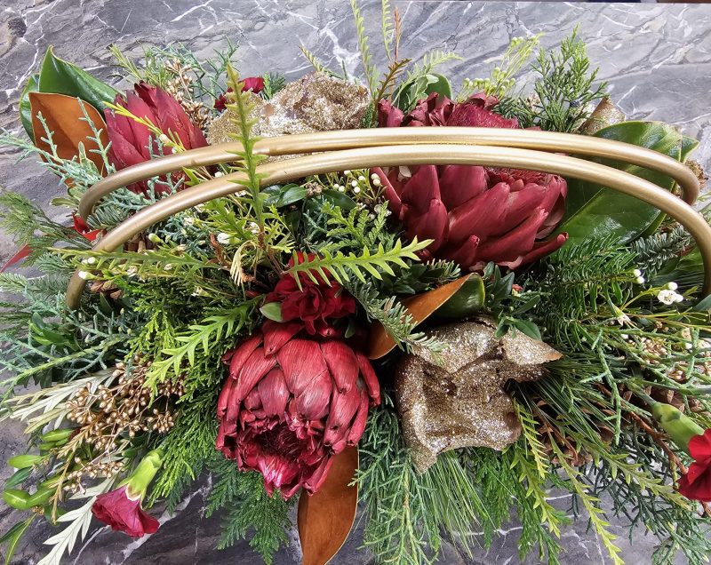 Into the floral foam that sits firmly in the pot, participants will design with fresh mixed evergreens, including deluxe varieties like boxwood and arborvitae. To accent, pinecones, berries and light florals will be added, making it an elegant table arrangement.