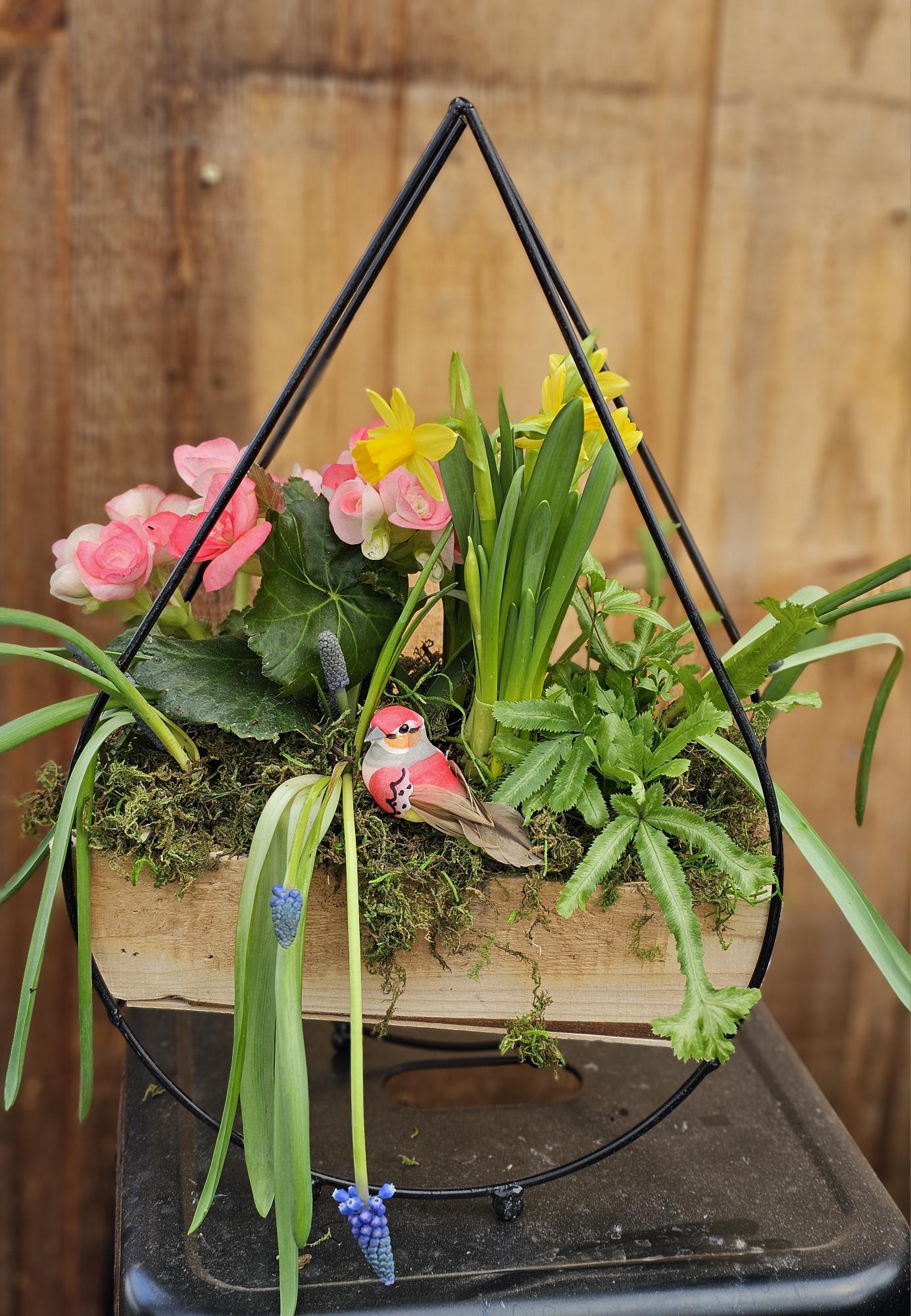 We will offer an assortment of three wood/metal designs as the planter of this value-priced workshop. Petite, these planters are perfect to sit on indoor side tables or kitchen islands, transferring to outdoor use on a small patio table, if you wish, for warmer days.